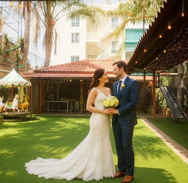 ¡Diversión segura para los peques! Nuestro jardín de eventos cuenta con un área de juegos al aire libre pensada para niñas y niños, con zonas de sombra y equipos resistentes. Está ubicada cerca de la zona principal para fácil supervisión, incluye resbaladillas , carrusel y espacios para puedas colocar otras juegos como inflables , bricolin o toros mecanicos. Es el complemento perfecto para que ellos se entretengan mientras los adultos disfrutan la celebración, en un ambiente cuidado, limpio y rodeado de naturaleza.
