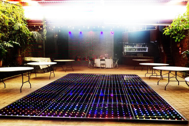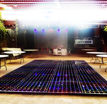 ¡Haz que cada paso brille! En nuestro jardín de eventos contamos con una pista de baile LED de última generación, perfecta para bodas, XV años y celebraciones corporativas. Su iluminación programable permite crear efectos y colores a juego con tu temática, desde entradas espectaculares hasta el clímax de la fiesta. Es segura, resistente y se adapta a diferentes montajes, ofreciendo una experiencia inmersiva que hará lucir tus fotos y videos. Convierte tu evento en un recuerdo inolvidable con una pista que pone la energía y el estilo en el centro de la celebración.